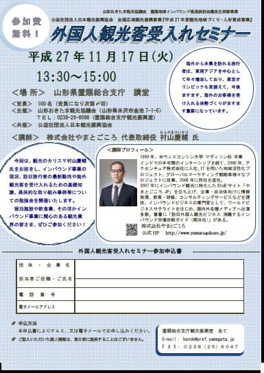 山形おきたま観光協議会では、このたび、外国人観光客受入れセミナーを企画いたしました。