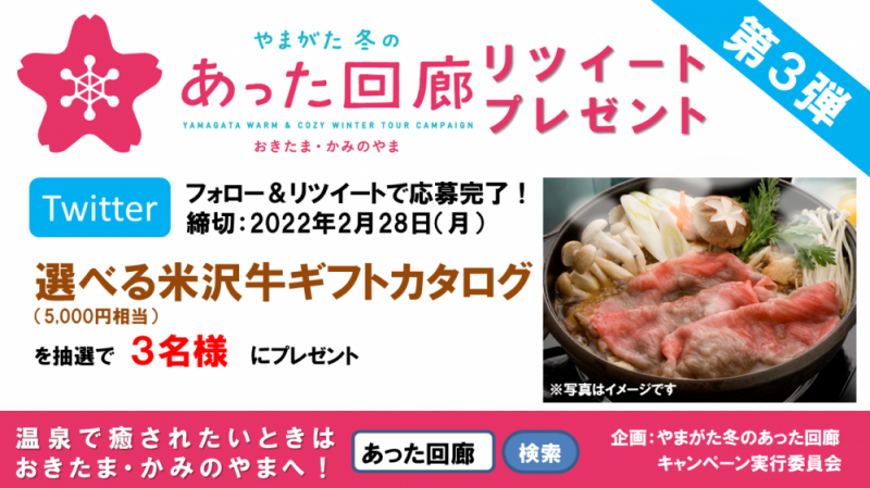 やまがた冬のあった回廊キャンペーンのリツイートプレゼントの第3弾を開催します。
